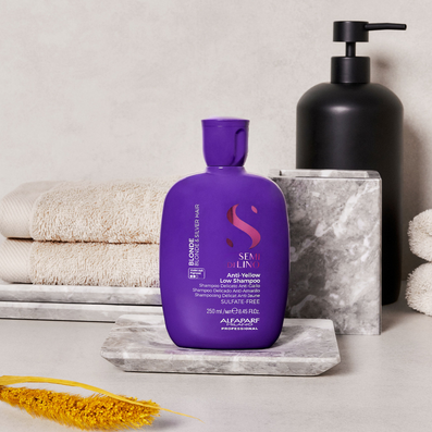 Alfaparf Milano Semi Di Lino Blonde Anti-Yellow Low Shampoo (250ml) gently cleanses and neutralises unwanted yellow tones in natural or colour-treated blonde and silver hair. This shampoo optimises moisture levels to enhance shine and softness, whilst revitalising the hair shaft.