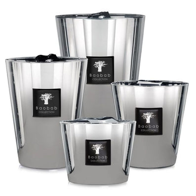 Baobab Collection Max 16 Platinum Candle is Baobab's signature model and will make an impressive addition to your home decor with its precious glass revealing the flames, flooding your interiors with an unmatched glow as it releases a refreshing fragrance into your interiors. Generating a masculine ambience both elegant and powerful, the combination of Amber, Nutmeg and Vetiver notes at the heart of the Platinum scent gives it a refined aspect. Grapefruit Extract enlivens the composition.