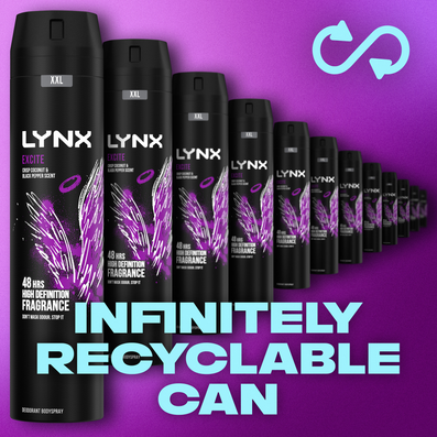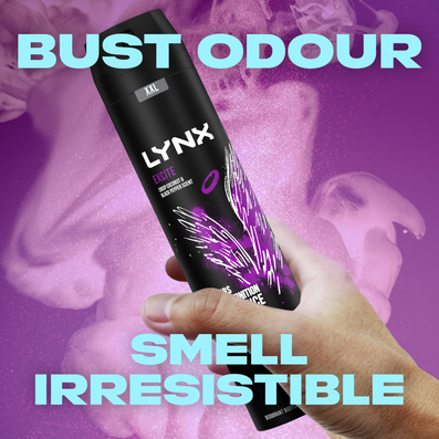 This deodorant spray gives you 48 hours of odour protection with its revolutionary dual-action odour-busting Zinc technology keeping you smelling fresh and feeling confident all day. This aerosol bodyspray fights odour-causing bacteria so you can avoid odour and smell irresistible for 48 hours. This great-smelling Lynx deodorant aerosol comes in an infinitely recyclable can - fresher you, cleaner planet. Cruelty-free.