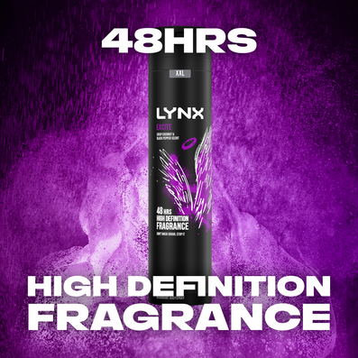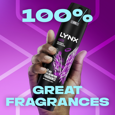 Lynx XXL Excite 48h Crisp Coconut & Black Pepper Deodorant Body Spray (250ml) exudes the spicy notes of Black Pepper blended with Crisp Coconut to create a scent which captures that warm, giddy feeling of butterflies in the stomach when a crush walks by.