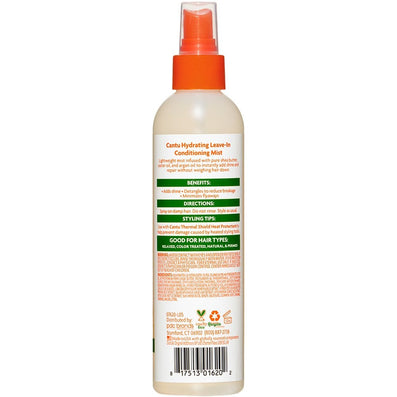 Cantu Shea Butter Hydrating Leave-In Conditioning Mist (237ml) instantly hydrates and adds shine, detangles knots and protects against frizz and flyaways.
