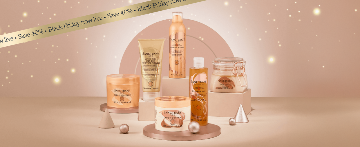Save 40% on Sanctuary Spa RRP - luxurious textures and comforting scents made to relax, hydrate and rejuvenate skin.