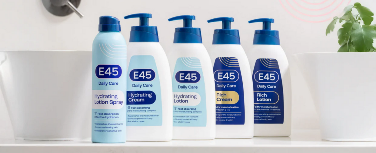 Save 25% on E45 RRP - gentle, effective body care created to hydrate deeply and support a healthy skin barrier.