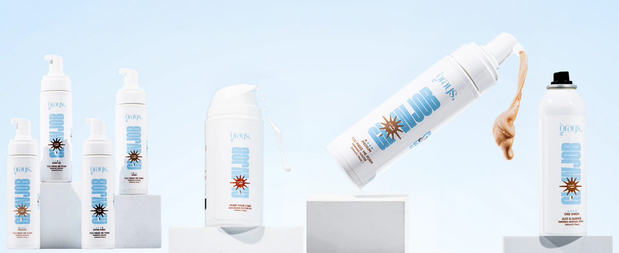 Grays is a family-run sun and tan brand founded by stepmom Lilli and son Cain, combining their beauty expertise to create vibrant products for sensitive skin. With Cain's qualifications and Lilli's 12 years in the salon industry, Grays ensures each product is effective yet gentle. Their standout 'glowjob' formula caters specifically to sensitive skin, reflecting their commitment to inclusivity. Grays focuses on high-quality formulations while adding personality, making beauty care fun and accessible.