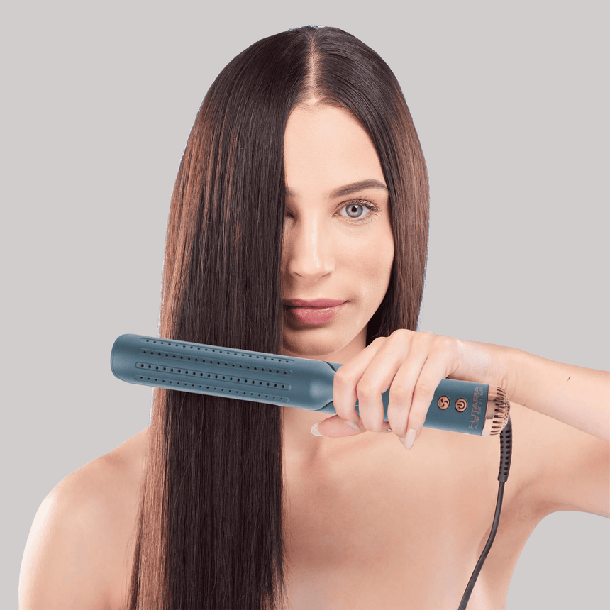 The Titanium Vibe Straightener features vibrating plates that reduce friction and help achieve a sleek finish with less heat damage.