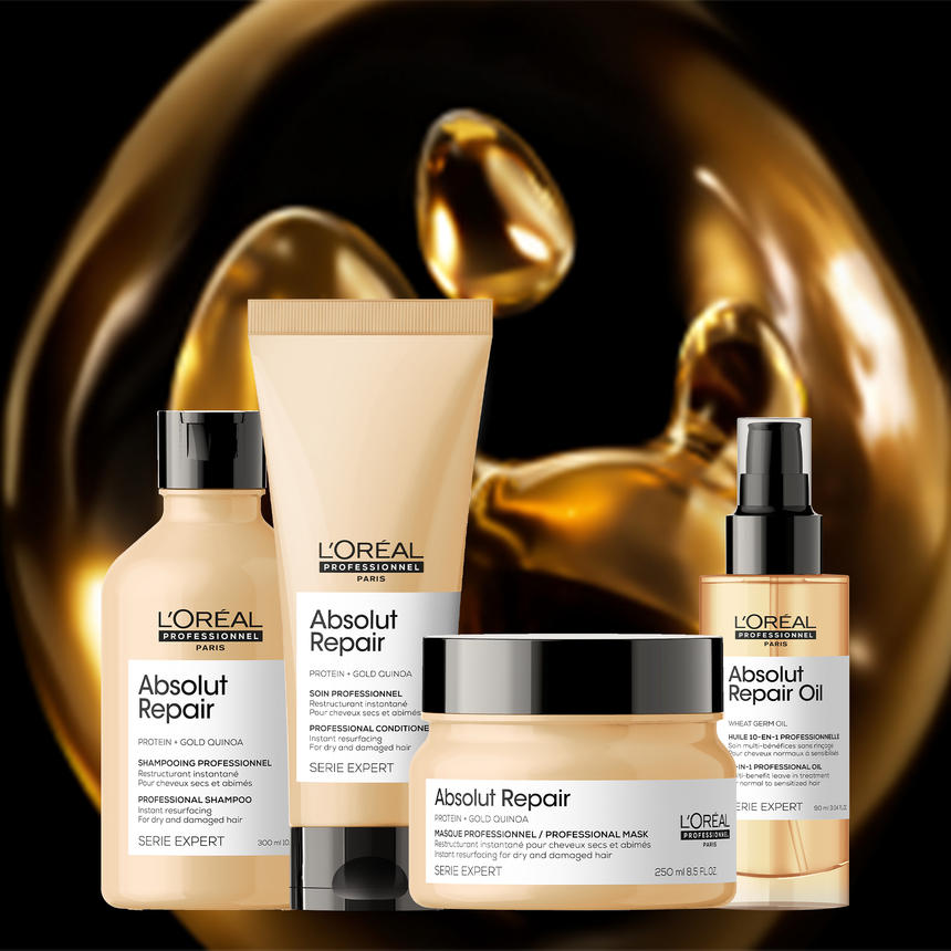 For coloured and damaged hair, incorporate the Absolut Repair shampoo and conditioner into your daily haircare routine. Additionally, for brittle, dry, and frizzy hair, use a hair serum like the Absolut Repair 10-in-1 oil to restore and soothe your hair. For a deep treatment, try the lightweight Absolut Repair Protein Mask.