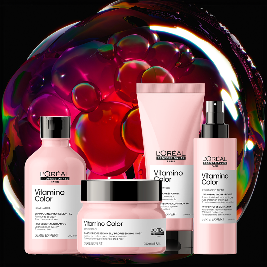 Since the invention of hair colour more than 110 years ago, L'Oreal Professionnel has pushed the boundaries of science and technology, driven by a commitment to innovation, safety, and delivering exceptional results for stylists and women alike. Renowned for pioneering advancements in hair colour, the brand continues to lead the industry with cutting-edge solutions. The new Vitamino Colour Spectrum range is the ultimate choice for colour protection, each product is designed to keep hair vibrant and luminous. Also worth exploring are two standout innovations: Metal Detox, a system that shields hair from the effects of hard water, and Absolut Repair Molecular, a groundbreaking range that repairs damaged hair at the molecular level to restore ultimate strength.