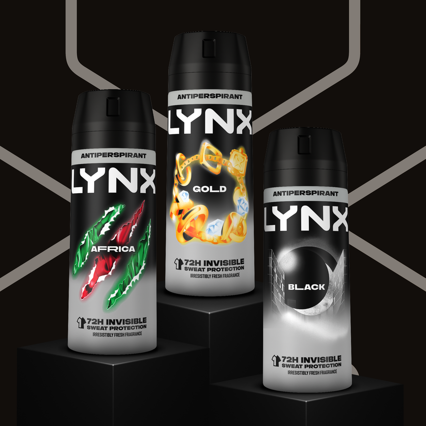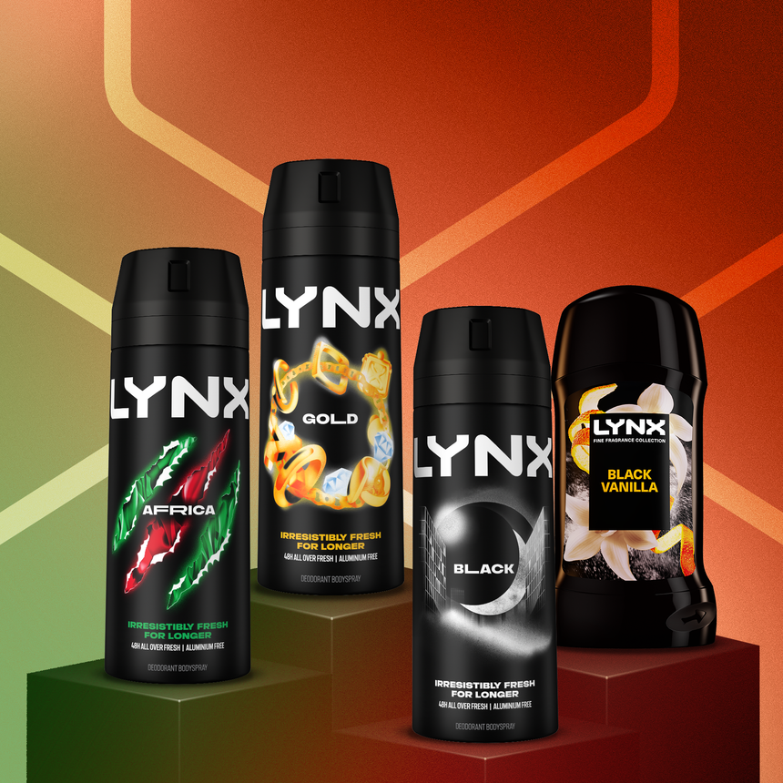 Lynx is a popular men's grooming brand known for its deodorants, body sprays, shower gels and fragrances. With a focus on confidence and self-expression, Lynx encourages individuality and aims to help men feel fresh, confident and ready for anything.