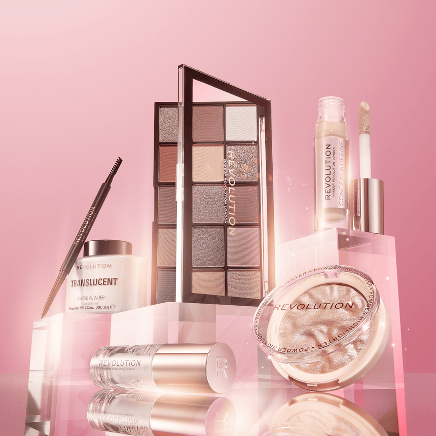 The Revolution Ultimate Nudes Pallette is a go-to for blendable looks, while the Conceal & Define Concealer is adored for its full coverage and smooth finish.