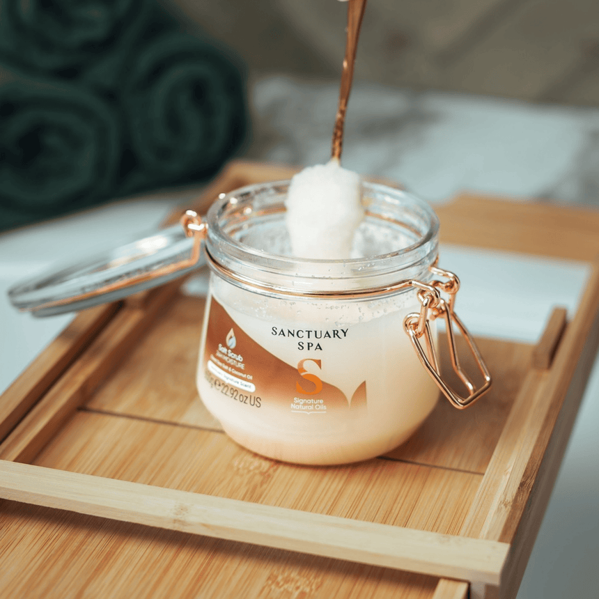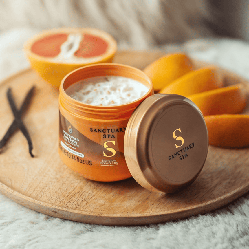 Sanctuary Spa’s signature scent blends jasmine, grapefruit and vanilla. The jasmine adds a calming floral note, the grapefruit brings a fresh, uplifting citrus touch, and the vanilla gives a warm, soft sweetness. This comforting fragrance runs through many of their bestselling products, from body washes to scrubs and butters.