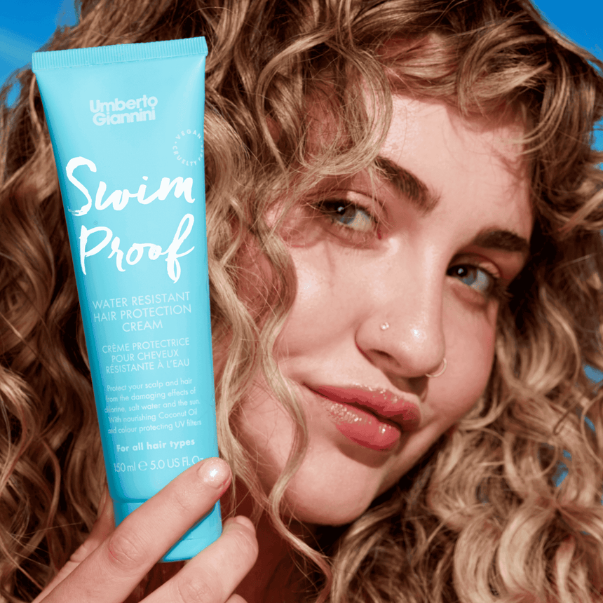 Swim Proof Hair Protection Leave In Cream protects hair from damage caused by chlorine, saltwater and UV rays, while nourishing and hydrating strands to keep them smooth and healthy during pool or beach days.