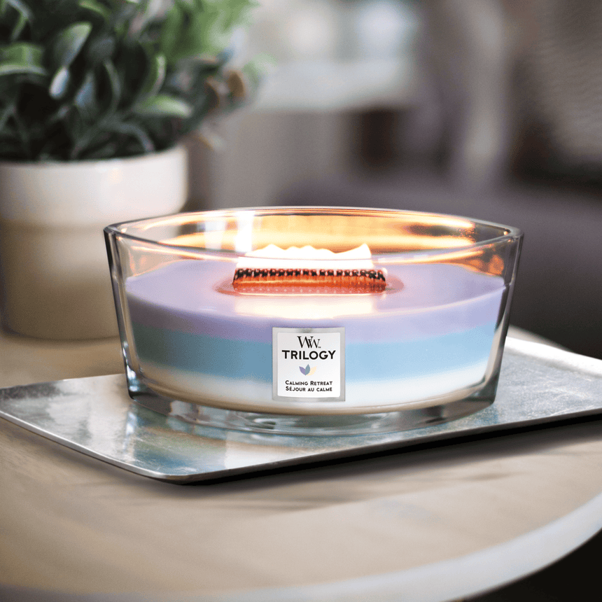 The WoodWick Trilogy Collection offers a unique, layered fragrance experience by combining three distinct scents in one candle. As the candle burns, the aromas blend and shift, creating a beautifully evolving atmosphere.