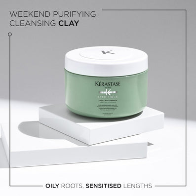 Kérastase Specifique Argile Equilibrante Weekend Purifying Clay (250ml) is a purifying cleansing clay for oily roots and sensitised lengths. This clay-infused, purifying treatment comes in a unique creamy green formula with a luxurious, earthy texture. Argile équilibrante cleanses gently with just the right amount of care. The hair retains a soft, shiny finish with a long-lasting clean.
