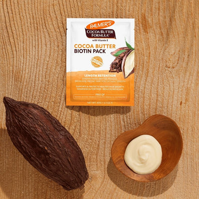 - Immediately after shampooing with Palmer's Cocoa Butter Formula Length Retention Shampoo, apply Biotin Pack generously and work through hair from root to tip and allow to penetrate for 2 to 3 minutes.