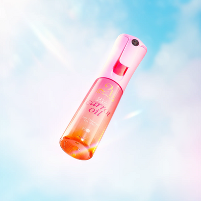 2BTanned Carrot Oil Dry Tanning Oil Flairosol Spray SPF6 (100ml) is a lightweight, water-resistant tanning oil designed to enhance and prolong your natural glow while offering low-level sun protection. Enriched with natural Carrot Oil, Vitamin A and tan-accelerating Tyrosine, this dry oil hydrates and revitalises the skin, helping to promote a deeper, longer-lasting tan with a radiant finish.