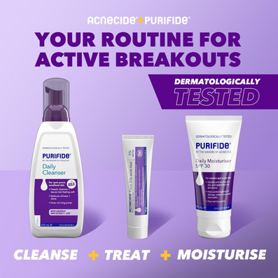 - After cleansing, moisturise and protect spot-prone skin with a Purifide moisturiser.