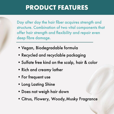 Free from sulphate and harmful ingredients, it combines Bamboo Marrow, rich in Silica for strength and elasticity, with Linseed Extract, a powerful source of fatty acids which smooths the hair fibre for added shine. Adding moisture to the hair, it also preserves up to 91% of colour intensity after 9 washes. The hair appears noticeably stronger and feels softer. Cruelty-free & vegan-friendly.