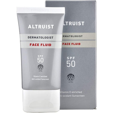 Altruist Dermatologist Face Fluid SPF50 Duo (2 x 50ml) is a moisturising, antioxidant facial sunscreen with 5-star ultra-UVA rating. This facial sunscreen provides broad spectrum UVA and UVB protection and is both hypoallergenic and non-comedogenic.