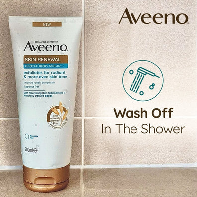 Aveeno Skin Renewal Gentle Body Scrub (200ml) is a gentle exfoliating scrub that visibly renews the skin, yielding a beautifully soft, radiant, and even skin tone and texture. It's particularly effective for dry, rough, and bumpy skin.