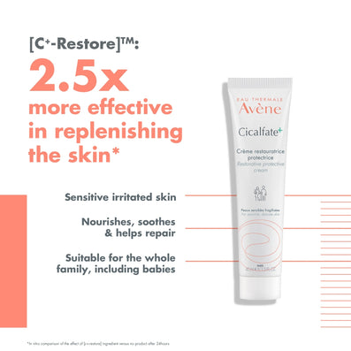 Avene Cicalfate + Restorative Protective Cream (40ml) is a gentle, protective cream formulated to nourish, protect, soothe and repair dry skin for the whole family, effectively treating all common dry skin irritations, including dry patches, chapped skin, grazes, sunburn and nappy rash.