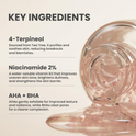 The formula features six key ingredients: Tea Tree Extract for soothing, Green Tea Leaf for sebum control, Camphor Leaf for its antibacterial properties, Mentha Aquatica for revitalisation, Liquorice Root for its antioxidant protection, and Broadleaf Bamboo for reducing inflammation. The cornerstone ingredient, 4-Terpineol, derived from Tea Tree, possesses antibacterial properties that tackle breakouts. The innovative PHYTO-OLIGO 1% Technology, a blend of Hollyhock Flower and Aloe Vera extracts, offers a moisture-rich and non-irritating solution ideal for sensitive skin. Cruelty-free & vegan-friendly.