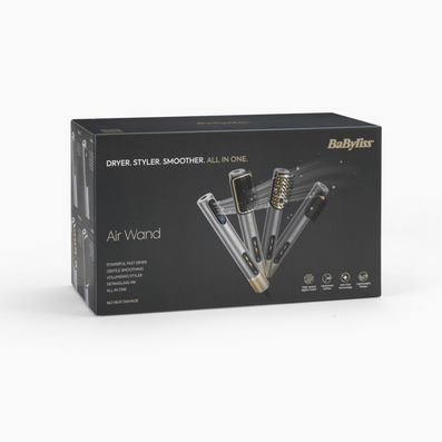 BaByliss Air Wand Limited Edition Beauty Gift Set AS6554U is an innovative wet-to-dry styler that detangles, volumises and smooths hair effortlessly using powerful air technology. Designed to dry and style simultaneously with no heat damage, it delivers fast, salon-quality results while protecting your hair's natural health and shine. With super-fast 123km/hr air speed, advanced airflow technology and an ultra-lightweight design, this tool combines performance with ease for beautifully smooth, voluminous results every time.