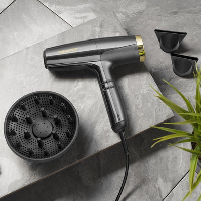 Exceptional heat and speed control is provided by its 3-speed and 4-temperature settings making it suitable for use on any hair type or texture. The removable magnetic rear filter ensures ease of cleaning and maintenance. The innovative T-shape design provides perfect balance, while the ergonomic housing remains cool to the touch for effortless handling. This dryer benefits from ionic technology which leaves your hair smooth and shiny, eliminating frizz and flyaways. The cold shot button enhances shine, delivers perfect hold and sets your hairstyle. A choice of two concentrator nozzles facilitates smoothing various hair types whilst an advanced diffuser aids curl drying.