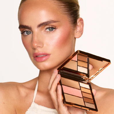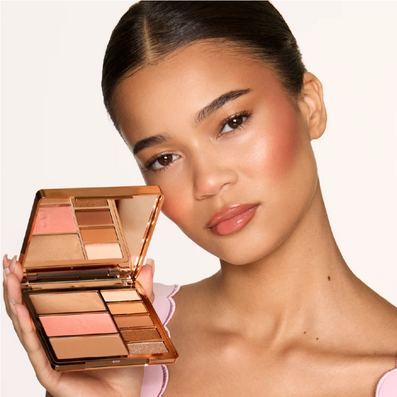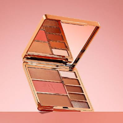 Inside, you'll find three ultra-blendable matte eyeshadows, one radiant shimmer shadow, and a bold glitter pigment for eye-catching dimension. A flattering blush and bronzer duo adds warmth and definition, while the luminous cream highlighter imparts a dewy glow. Housed in a compact with a built-in mirror for effortless touch-ups, this versatile palette transitions seamlessly from day to night. Cruelty-free & vegan-friendly.