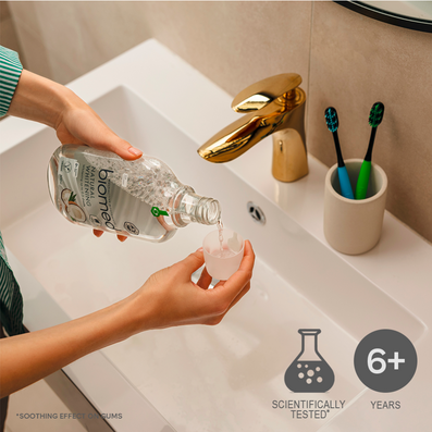 Biomed 99% Natural Whitening Multiactive Mouthwash (500ml) is a gentle daily rinse designed to naturally brighten teeth, care for gums and maintain fresh breath using botanical ingredients and mineral-based support.