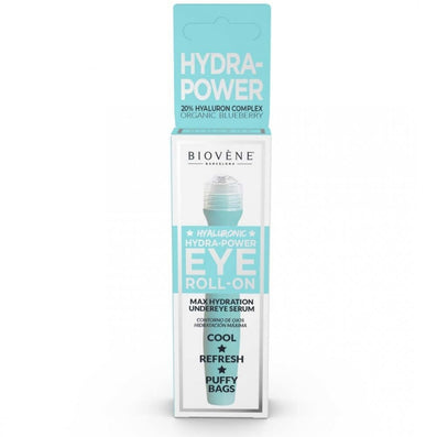 Biovene Hydra-Power Eye Concentrate Roll-On (15ml) is a nourishing, revitalising eye contour roll-on serum enriched with 20% ultra-hydrating Hyaluronic Acid and Organic Blueberry Complex.