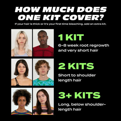 The best way to check the colour your hair will go is with a strand test. One kit suffices for very short hair or hair showing 6-8 weeks of root regrowth. Short to shoulder-length hair will require two kits. Longer hair below shoulder length will require three kits. Cruelty-free & vegan-friendly.