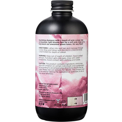 Bleach London Rose Shampoo (250ml) is a pink-coloured shampoo which gently cleanses bleached hair while depositing pastel colour to maintain or build your baby pink tone.