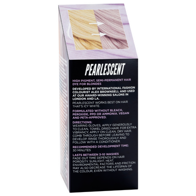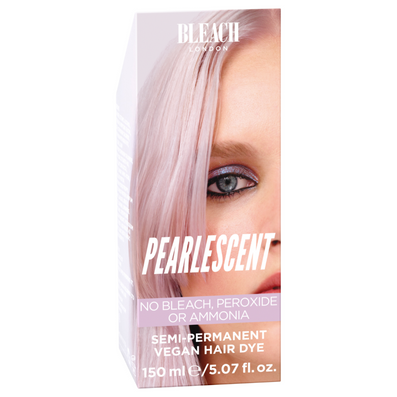 Bleach London Super Cool Colour Pearlescent (150ml) is a pearly pink semi-permanent hair colour cream which fades out in between 3 and 10 washes. It turns bleached and toned hair a cool, pearly pink shade. Suitable for use on all hair types, Pearlescent works best on hair which has been bleached and toned with pinky-purple Pearlescent Super Toner. It is recommended that a strand test is carried out to check the colour your hair will go after using this dye.