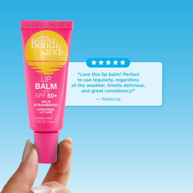 Bondi Sands Wild Strawberry Lip Balm SPF50+ (10g) allows you to enjoy hot Summer days without fear of dry, cracked lips. With a pleasant scent and subtle taste of delightful Strawberries, this lip balm has added SPF50+ protection to keep lips protected and safe from damaging solar radiation. Enriched with Vitamin E, this balm provides rapid hydration to ensure lips feel full, nourished and protected even on those blisteringly hot days!