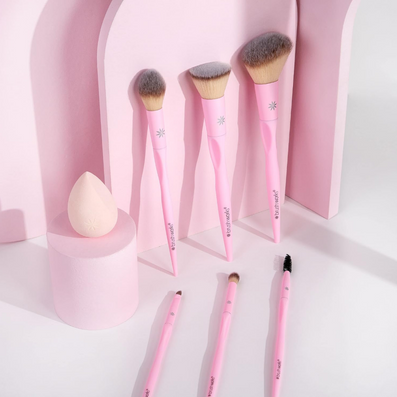 Each brush features ultra-soft synthetic taklon bristles that blend and buff effortlessly for a professional-quality complexion. Perfect for foundation, concealer, bronzer and powder, this versatile set ensures precision, comfort and control in every stroke. The set is completed with a precision-designed, pink blending sponge. Cruelty-free & vegan-friendly.