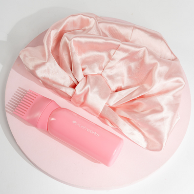 - 1 x Brushworks Satin Hair Turban Pink - a soft satin turban designed to protect hair overnight by reducing friction, helping to prevent frizz, tangles and breakage. Suitable for all hair types, including curly and textured hair, it helps maintain moisture and prolong the life of blowouts, curls and extensions. Finished with a secure elasticated band and chic bow detail for breathable, all-night comfort. Cruelty-free & vegan-friendly.