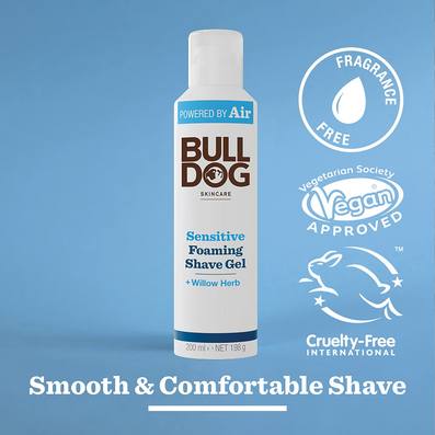 Bulldog Skincare Sensitive Foaming Shave Gel (200ml) is a gentle, air-powered foaming gel designed to give sensitive skin a smooth and comfortable shave. Its innovative canister delivers a rich foam without the use of traditional aerosols.