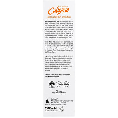 Calypso Once A Day Sun Protection Cream SPF20 (200ml) only needs to be applied to the skin once and protects you all day long.