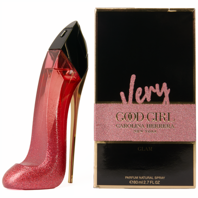 Carolina Herrera Very Good Girl Glam Parfum (80ml) is a tribute to fearless femininity, encapsulating the essence of a confident and radiant woman. This bold fragrance is an evolution of the Very Good Girl line, defined by its sparkling Cherry top notes and the iconic stiletto-shaped bottle, now draped in glossy cherry-red and a cascade of glitter, making a stunning statement of femininity.
