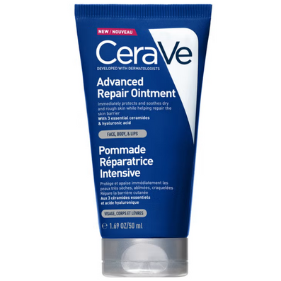 CeraVe Advanced Repair Ointment (50ml) is a lightweight, multi-purpose formula created to soothe and protect very dry, chapped, or cracked skin on the face, body, and lips. Developed with dermatologists, it combines pharmaceutical-grade Petrolatum, Hyaluronic Acid, and three essential Ceramides to provide instant comfort while restoring the skin's natural barrier.