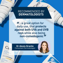 Enriched with Hyaluronic Acid and three essential Ceramides, it helps restore and maintain the skin's natural barrier, leaving it soft, smooth, and comfortable all day. Developed with dermatologists, this non-greasy formula absorbs quickly without leaving a white cast, making it ideal for normal to dry and sensitive skin. Trusted by 95% of UK dermatologists, it offers daily care that keeps skin hydrated and protected. Non-comedogenic.