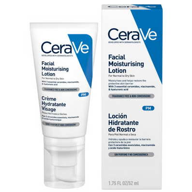 CeraVe Facial Moisturising Lotion PM (52ml) is a lightweight night cream designed to deliver long-lasting hydration while supporting the skin's natural repair process as you sleep.