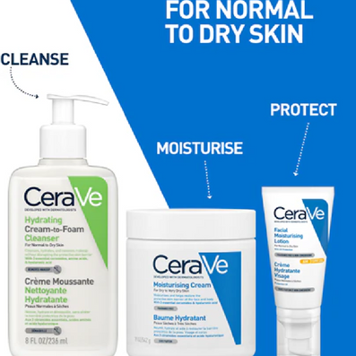 CeraVe Hydrating Cream-To-Foam Cleanser (236ml) is a unique cleanser for normal to dry skin that transforms from a rich cream into a gentle foam. Developed with dermatologists, this cleanser effectively removes dirt, oil, and makeup without stripping the skin of essential moisture.
