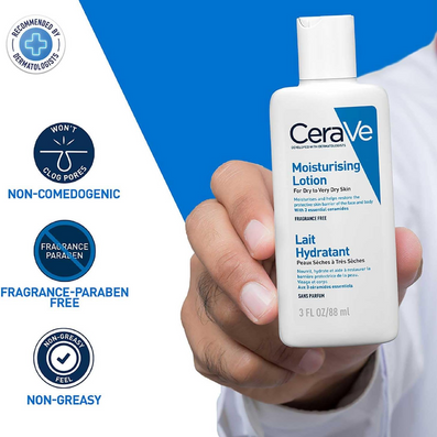 CeraVe Moisturising Lotion Travel Size (88ml) is a lightweight lotion designed for normal to dry skin, providing lasting hydration while supporting the skins natural barrier.