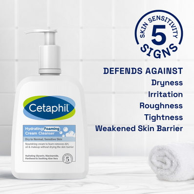 Cetaphil Hydrating Foaming Cream Cleanser (236ml) is a rich cream-to-foam cleanser for use on normal, dry or sensitive skin which transforms from a creamy lather to a rich foam to cleanse and soothe. This cream cleanser effectively removes pore-blocking dirt, oil and makeup whilst maintaining the skin's natural protective barrier and pH balance.