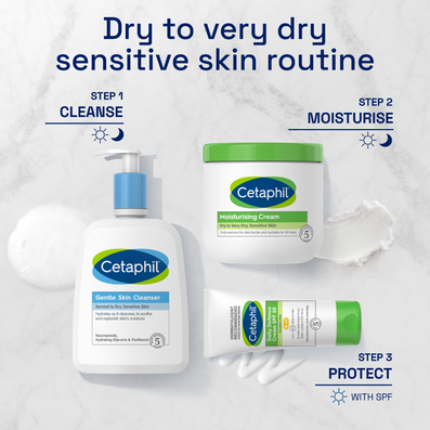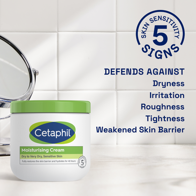 Cetaphil Moisturising Body Cream Tub (450g) intensively rehydrates dry, sensitive skin, providing up to 24 hours of moisturisation.