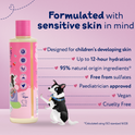 This sulphate-free formula is made with 95% natural origin ingredients and enriched with nourishing Vitamin E, helping to support the skin's natural barrier while providing up to 12 hours of hydration and softness. Clinically proven to be kind to sensitive skin, it's suitable for newborns and children of all ages, including those who may be prone to eczema. Dermatologist and paediatrician approved. Cruelty-free & vegan-friendly.