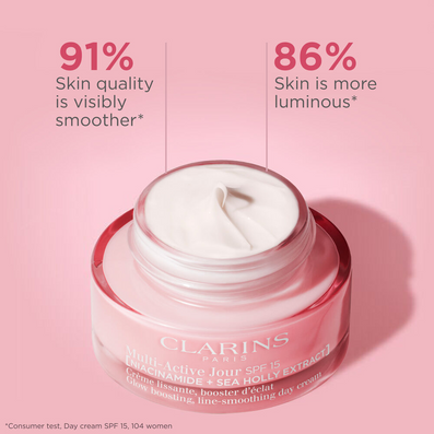Clarins Multi-Active Day Cream SPF15 (50ml) is a radiance-boosting anti-ageing moisturiser designed for women in their 30s with busy lifestyles.