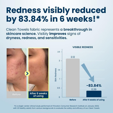 The formula has been enhanced with Advanced Cellulose Fiber Technology, meticulously tested to provide the perfect balance of thickness and softness, optimising your skincare experience. Dermatologist-tested and clinically approved, these towels are proven to visibly improve signs of dryness, redness, and sensitivity, making them an indispensable part of daily skin care. Cruelty-free & vegan-friendly.