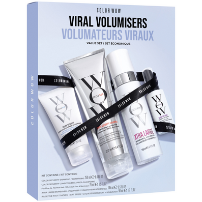 Color Wow Viral Volumisers Kit is a complete volumising and colour-care collection designed to deliver weightless lift, lasting body and radiant shine. Featuring a salon-quality shampoo and conditioner alongside two powerhouse volumisers, this set keeps colour-treated hair looking bright and healthy while adding fullness and bounce without stiffness.